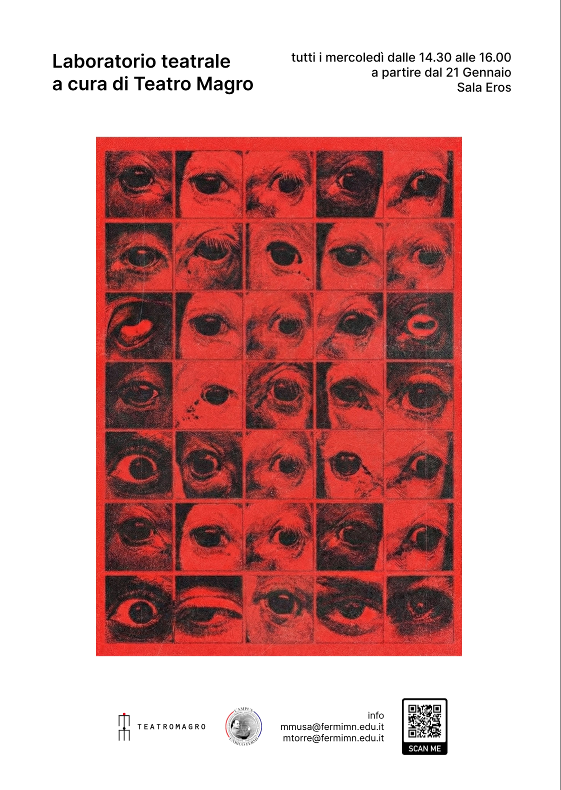 In collaborazione con Teatro Magro da MERCOLEDì 21 GENNAIO, presso la SALA EROS riprende il laboratorio teatrale. Sarà un'occasione per sperimentare un nuovo linguaggio, per sperimentarsi, per implementare la consapevolezza del sé e sviluppare anche l'attitudine alla creatività!
